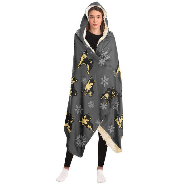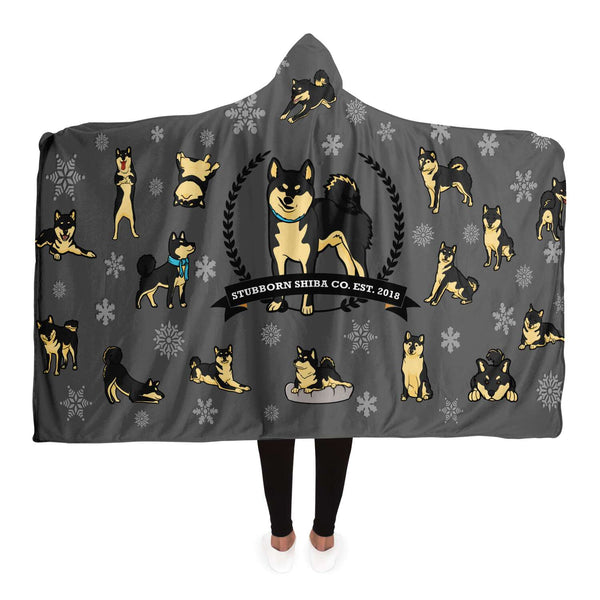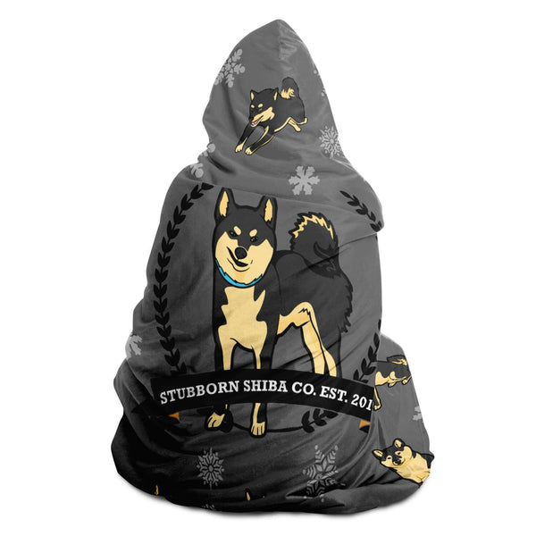 Stubborn Shiba Hooded Blanket - Black & Tan (Grey)