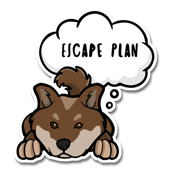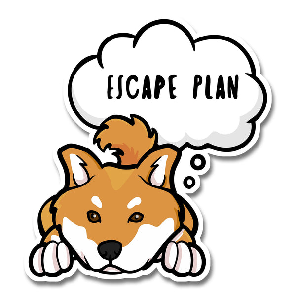 Stubborn Shiba Escape plan, they all have one! - Die-Cut Stickers! Measuring 5.5 x 5.5" makes this a very large sticker for any/ all uses.